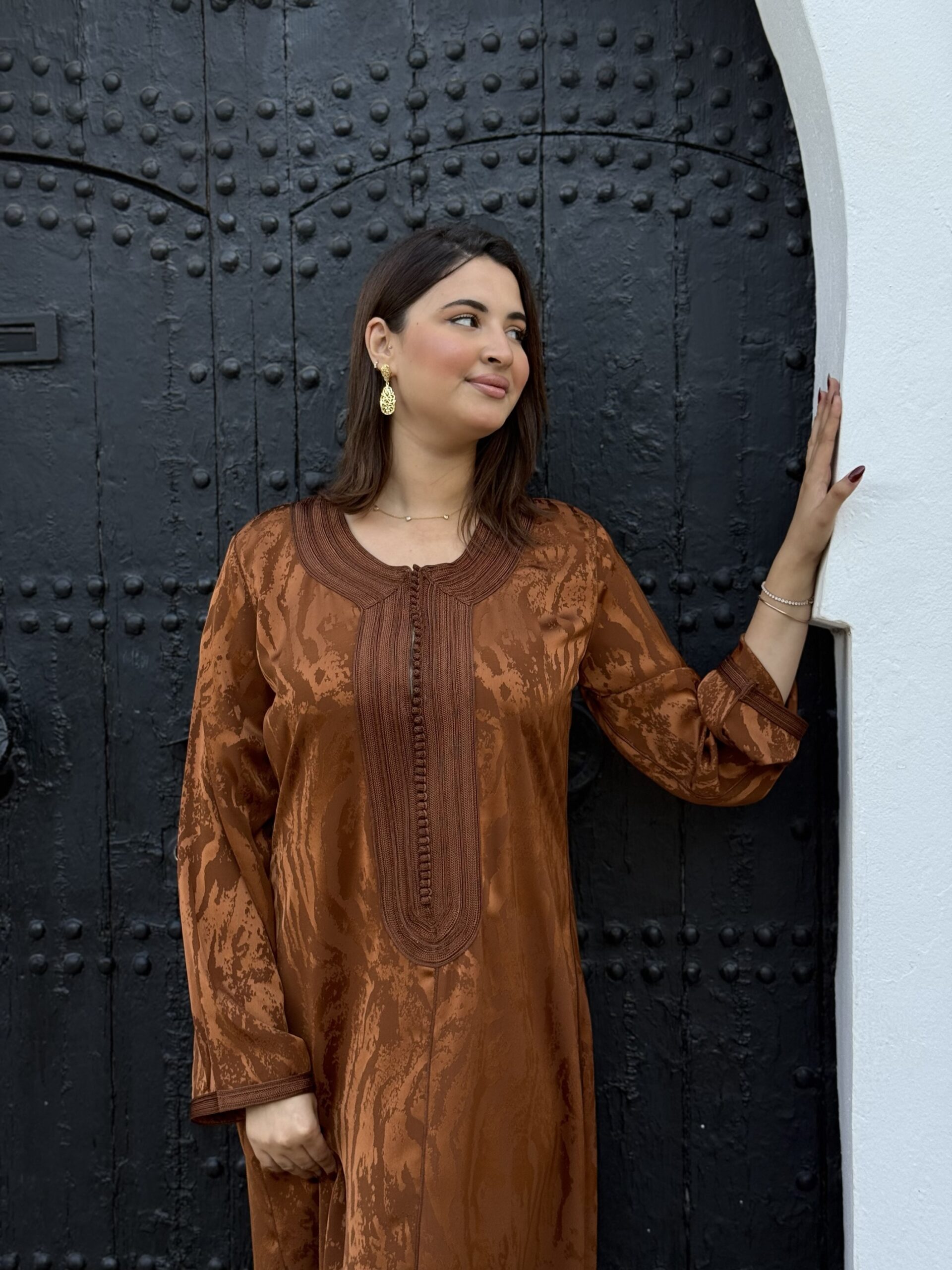 Dames Caftan Meriem- grijs met bordeaux borduring (pre-order)