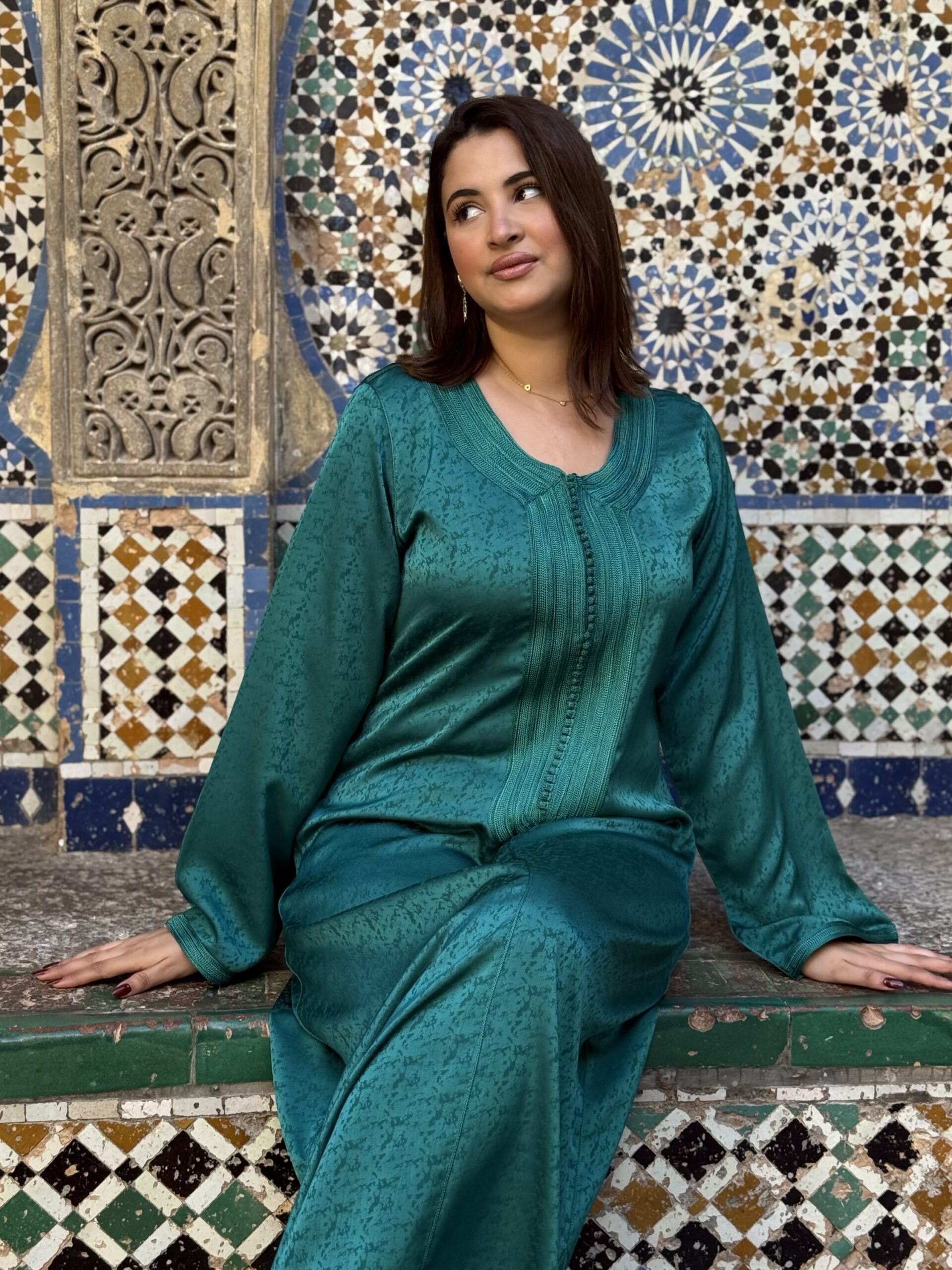 Dames Caftan Satin – Noura Emerald (pre-order)