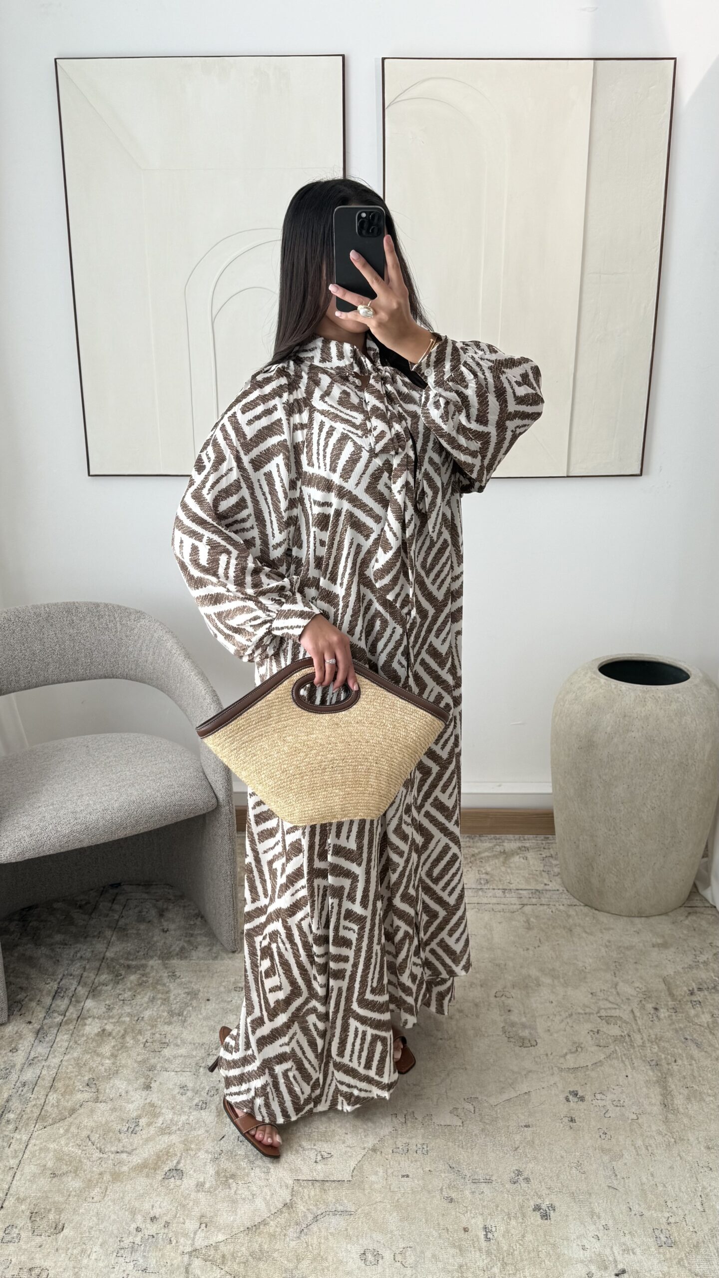 Dames Liyana Caftan – Taupe Silk Flow (pre-order)