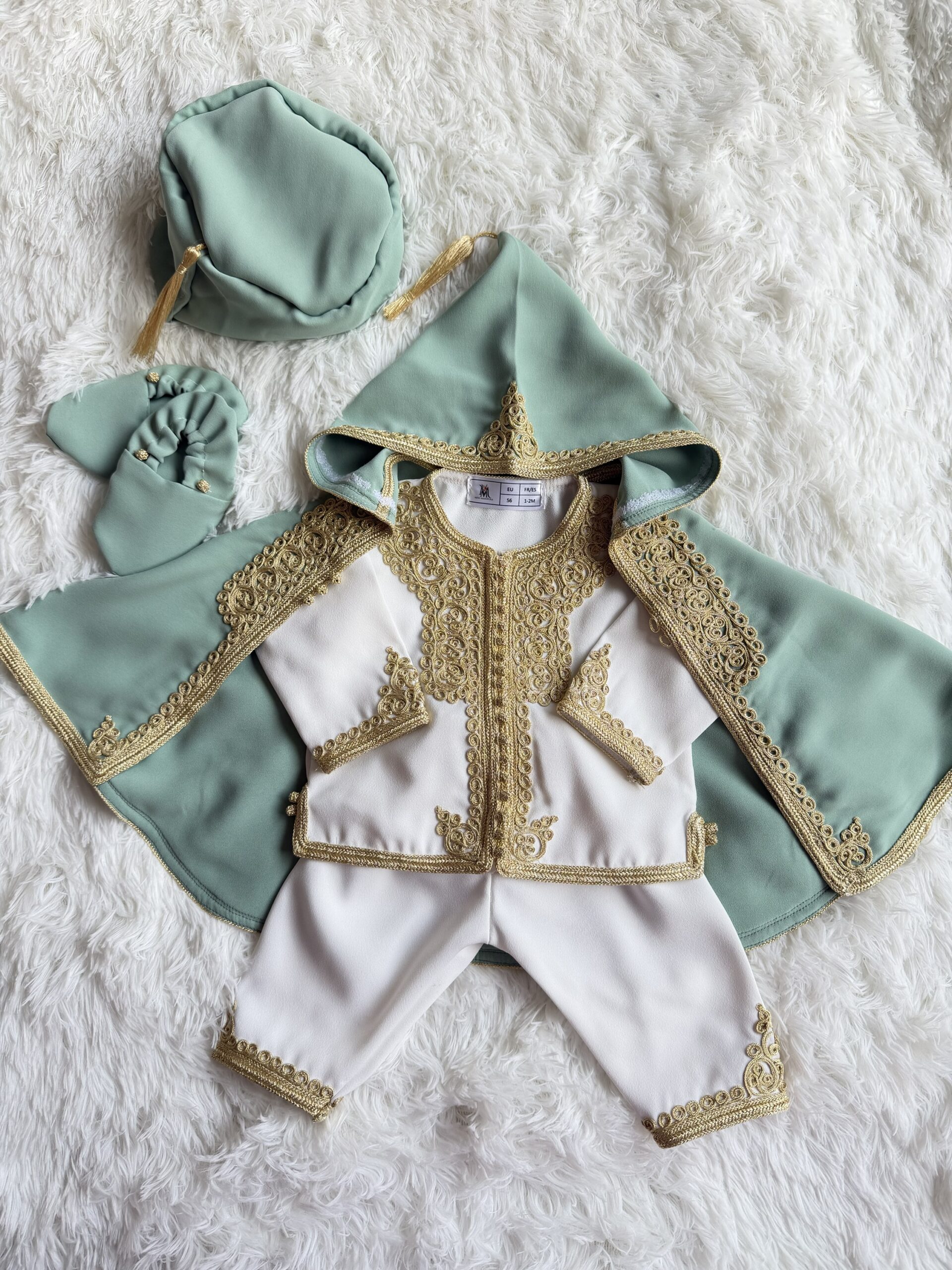 Thara set saliegroen met goud – inclusief Selham, jabador & hoedje (pre-order)