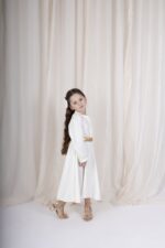 De taille wordt benadrukt met een mooie gouden riem die zorgt voor een stijlvolle en feestelijke look. Ideaal voor Eid, bruiloften, familiedagen en fotoshoots waarbij je dochter mag stralen in een tijdloze, chique outfit.