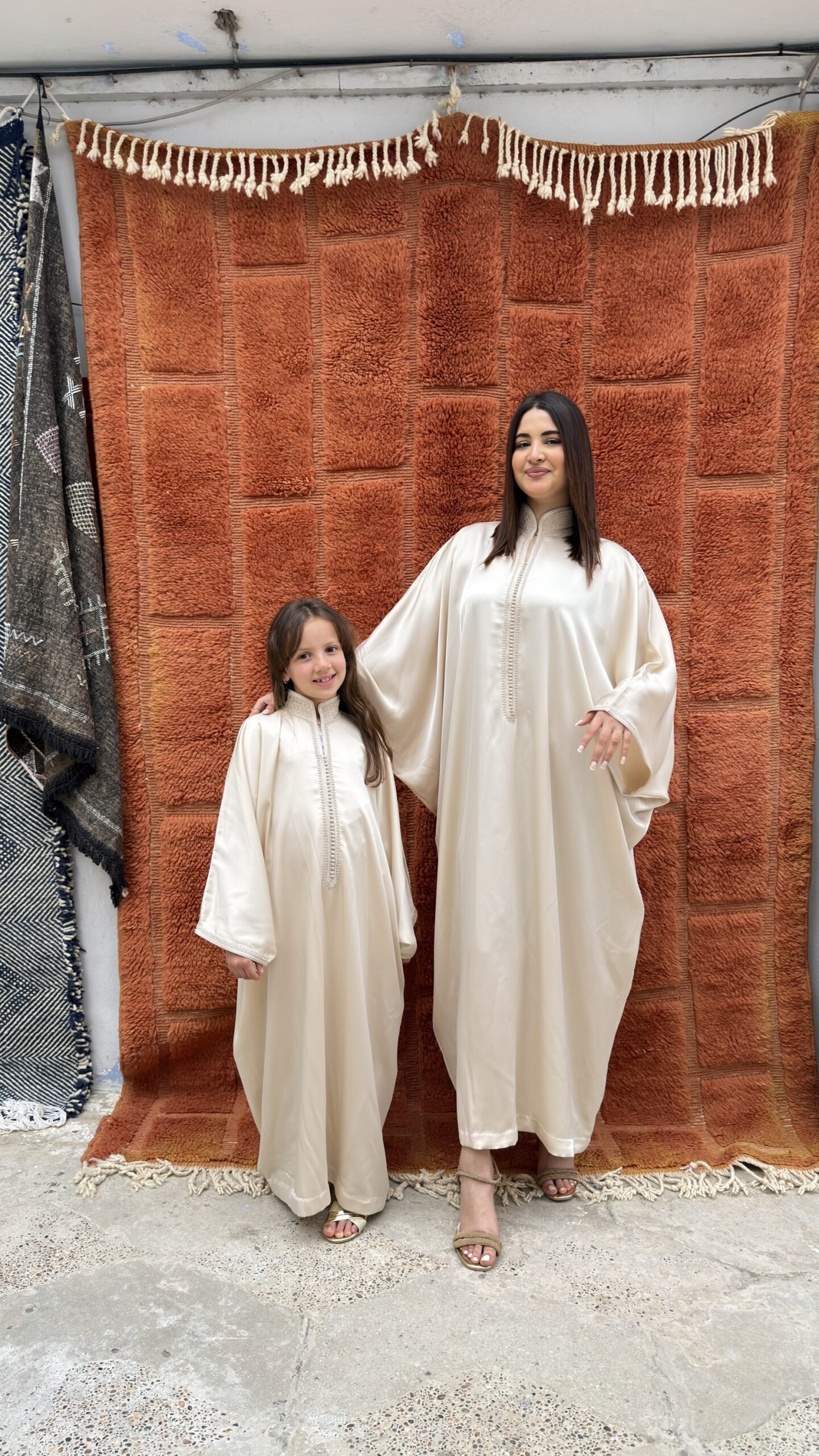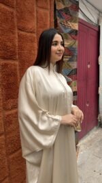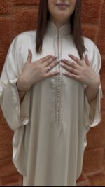 De Noor Caftan – Cream Silk Flow is een elegante, handgemaakte Marokkaanse caftan in een zachte crème tint met een subtiele zijdeachtige glans. Deze stijlvolle caftan is ontworpen voor zowel dames als meisjes en perfect voor een verfijnde matching moeder en dochter look.