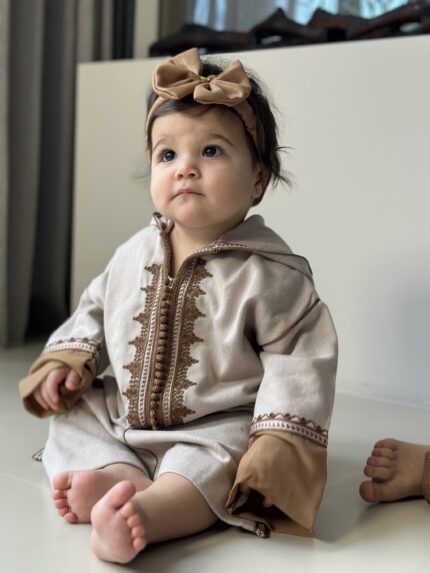 De Amira Jabador Set – Deep Cocoa is een elegante, handgemaakte Marokkaanse jabador in een diepe bruine tint die luxe en warmte uitstraalt. Deze tweedelige set is ontworpen voor zowel dames als meisjes, perfect om samen te stralen in een stijlvolle matching look.
