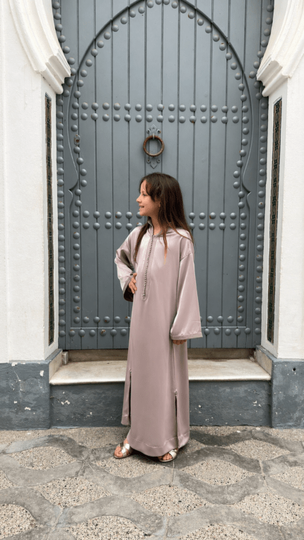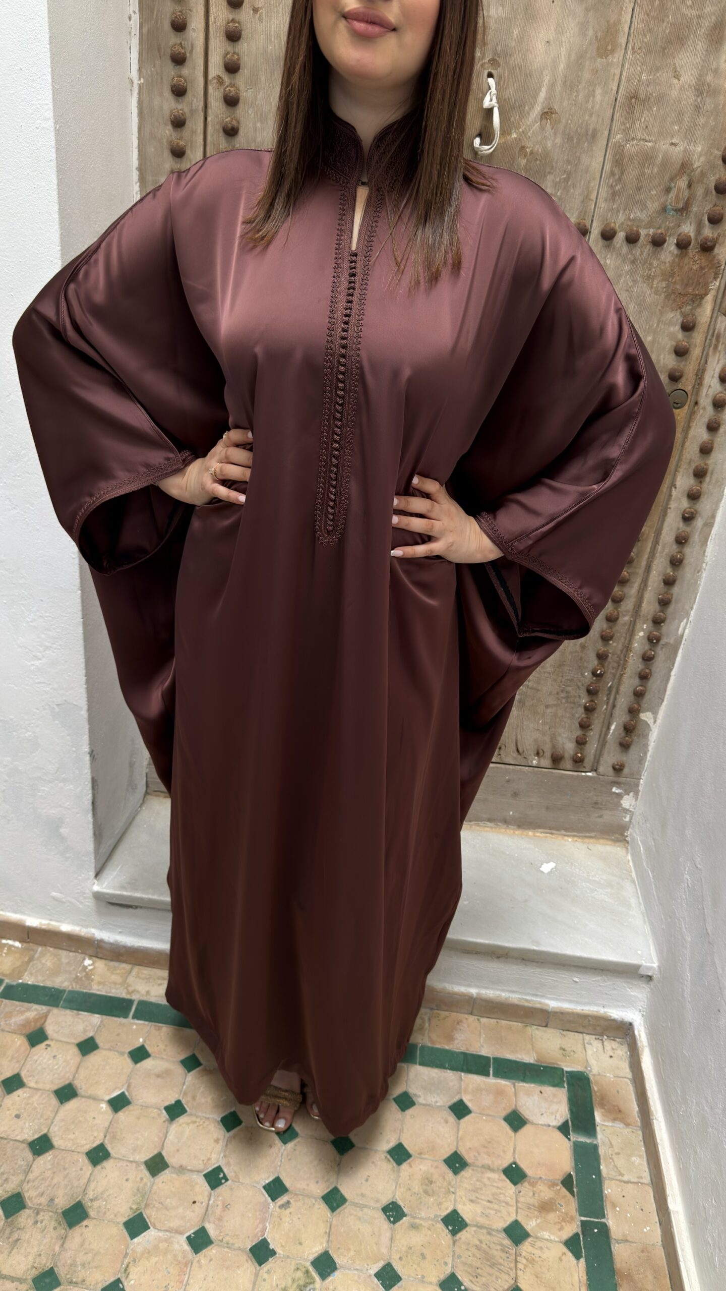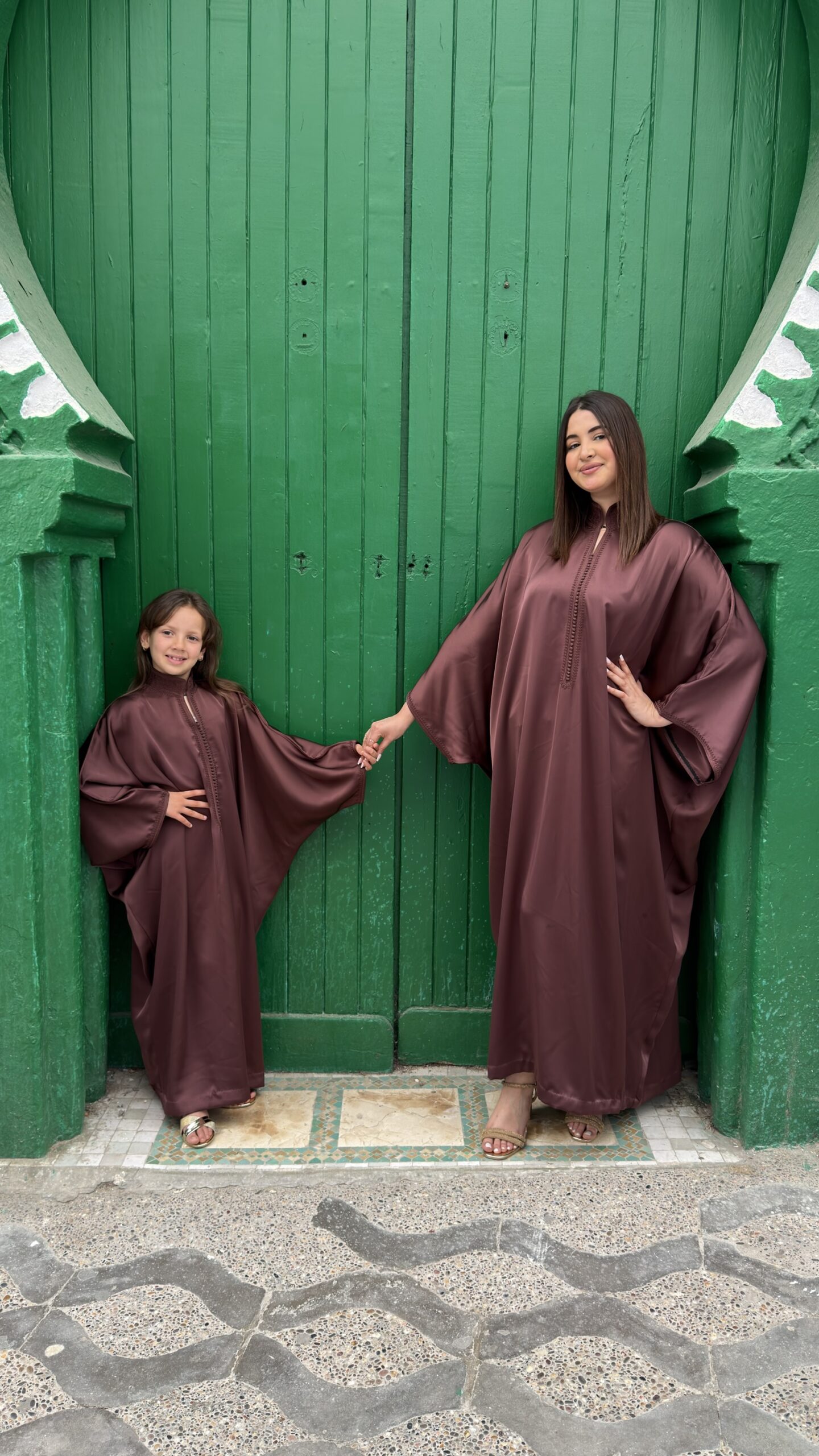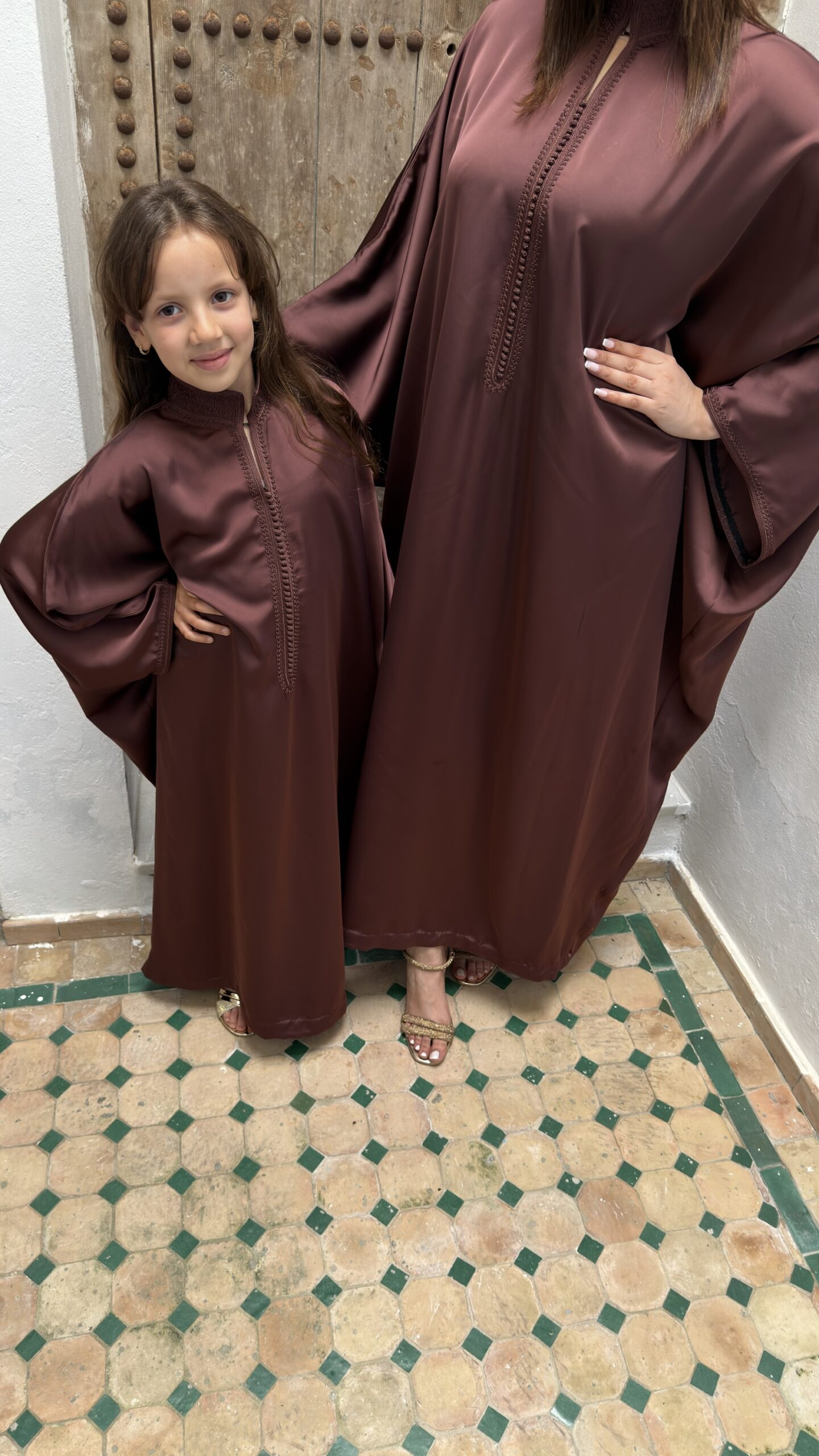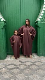 De Farah Caftan – Brown Silk Flow is een elegante, handgemaakte Marokkaanse caftan in een diepe bruine tint met een zachte, zijdeachtige glans. Deze stijlvolle caftan is ontworpen voor zowel dames als meisjes en perfect voor een verfijnde matching moeder en dochter look.