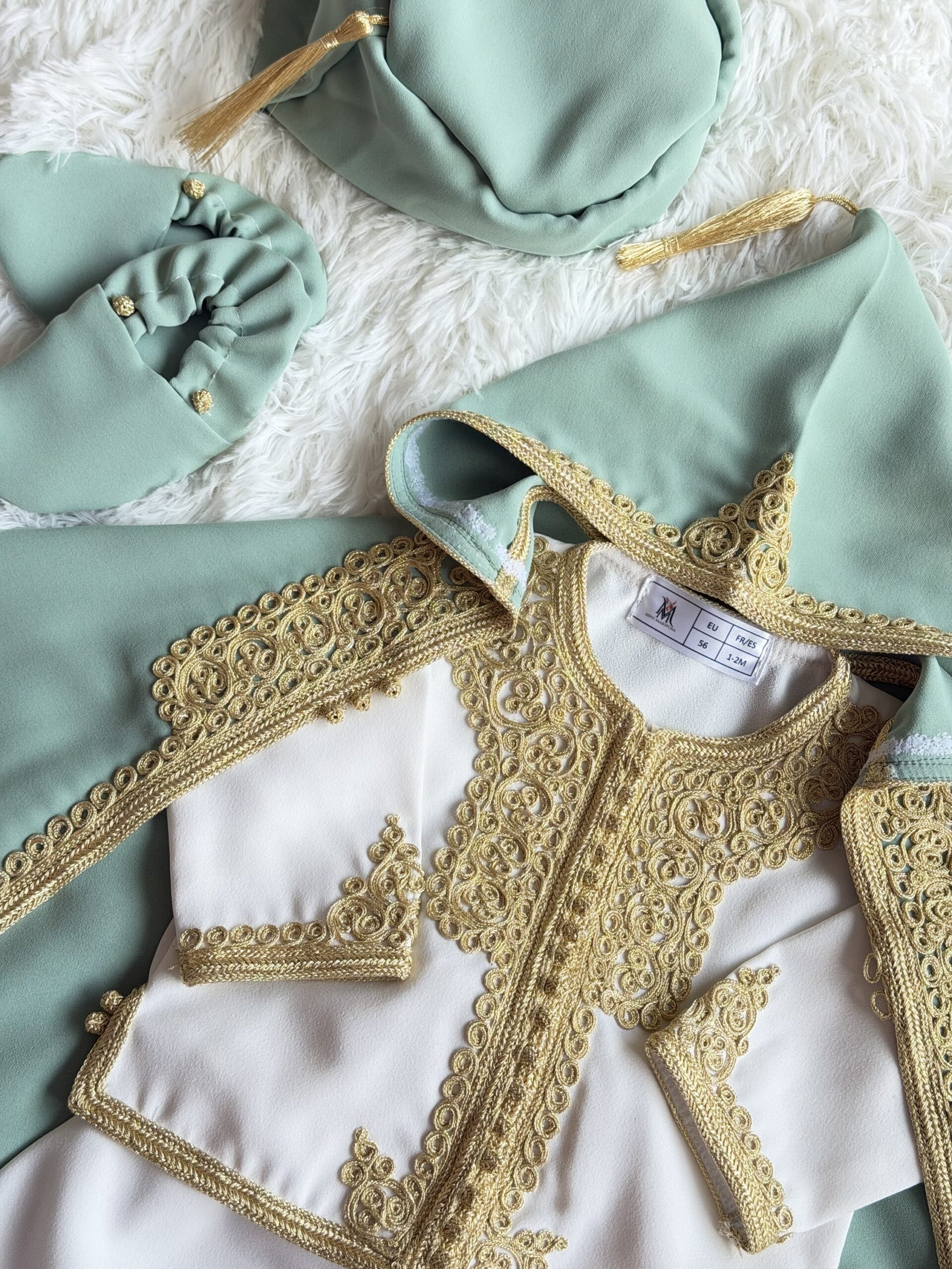 Thara set saliegroen met goud – inclusief Selham, jabador & hoedje (pre-order)