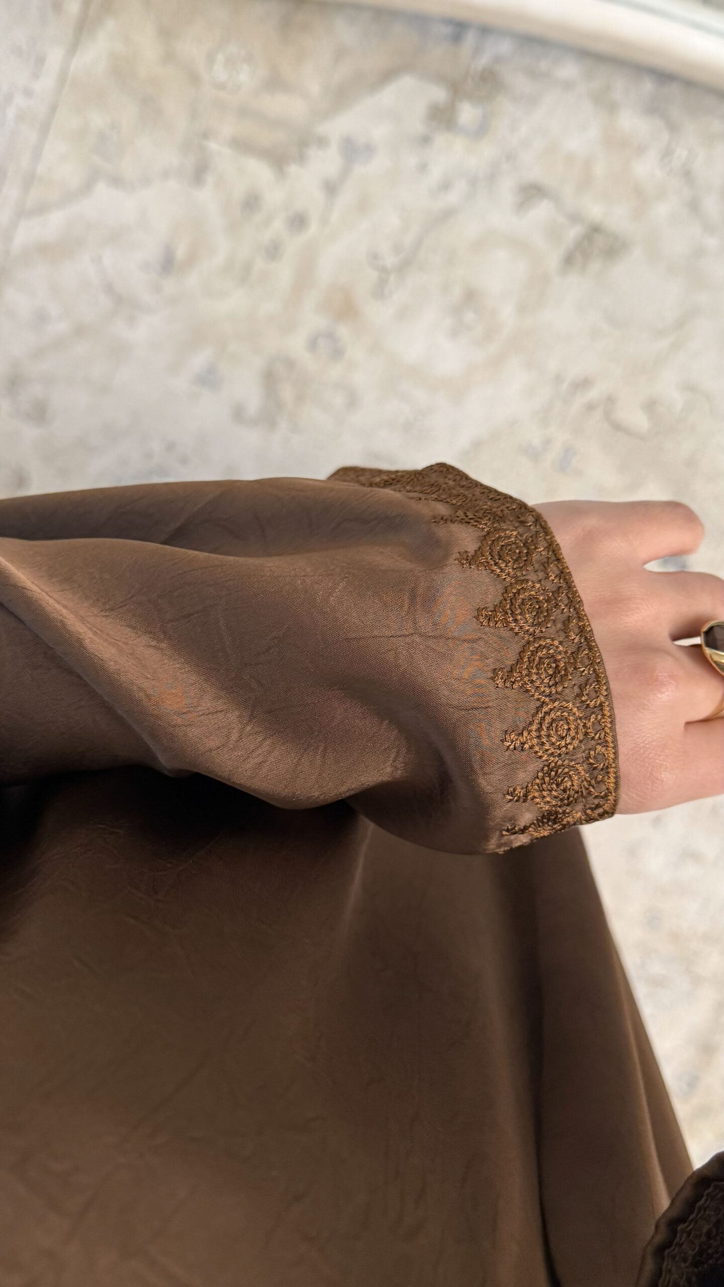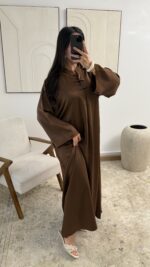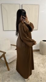 De Yang Abaya Dress Brown is een stijlvolle en verfijnde abaya jurk met een luxe uitstraling. Het elegante ontwerp met Mandarin collar geeft deze jurk een unieke en moderne look. De warme bruine kleur zorgt voor een tijdloze en chique uitstraling die perfect past bij elk seizoen.